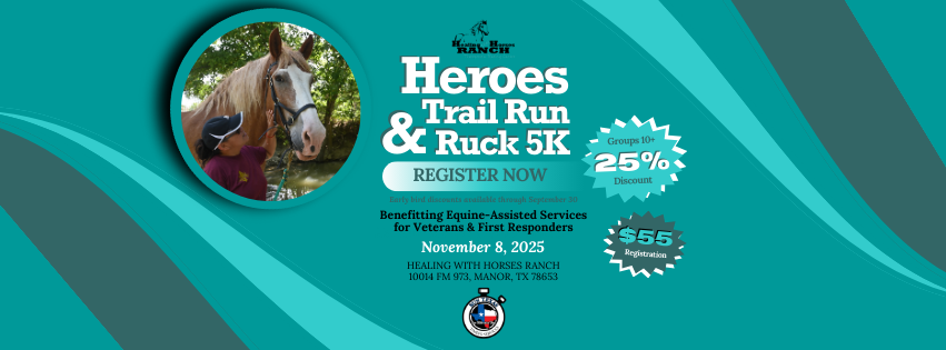 Join us for the inaugural Heroes Trail Run & Ruck through our beautiful Ranch, while supporting our mission of promoting resilience, independence, and life skills through the power of horses. Whether you're a walker, runner, rucker, or just here for the fun & community, this event offers something for everyone.